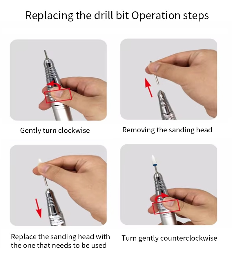 Ta nadomestni električni sveder za nohte s 30.000 vrtljaji na minuto deluje, to je, priključite in izvlecite, enostavno in priročno, zamenjavo lahko uporabite po zaključku.