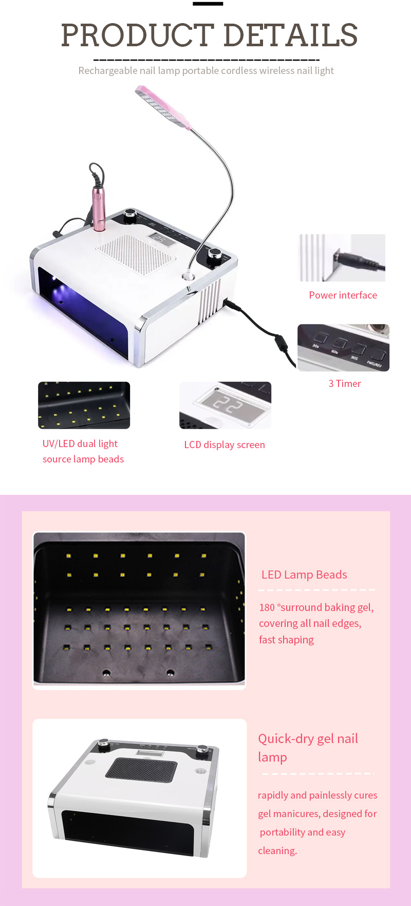 Večfunkcijska lučka za nohte 4 v 1 zagotavlja enakomerno sušenje lepila brez krčenja. Njena dvojna vira svetlobe zagotavljata nežno ogrevanje, da preprečita razbarvanje rok in obremenitev oči, primerna za roke in noge, kar zagotavlja izjemno hitre rezultate sušenja.