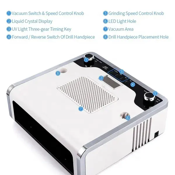 Izdelki Močna adsorpcija nohtnih naplavin ne pušča prahu, pult naj bo čist in urejen, hiter sesanje ne pušča moči prahu.