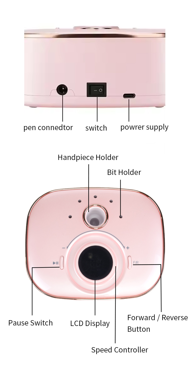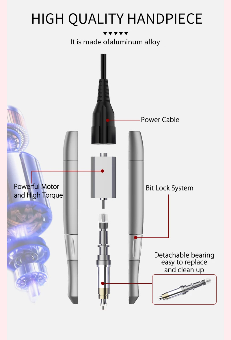 Prenosni komplet električnih svedrov za nohte z zmogljivim motorjem 65 W 35000 vrt./min