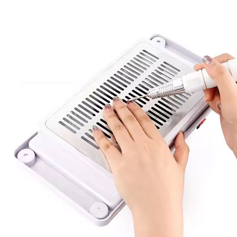 ja TheNamizni vgrajen zbiralnik prahu za nohte je posebej zasnovan za preprečevanje puščanja prahu. Močna sesalna moč 45 W v kombinaciji z učinkovitim tesnjenjem okoli sesalnega območja zagotavlja, da se prašni delci zajamejo pri viru, namesto da uidejo nazaj v delovni prostor. Med težkim polnjenjem akrila enota ohranja dosledno sesalno zmogljivost, ohranja pulte čiste in preprečuje, da bi prah prišel v zrak. Za tehnike, ki dnevno opravijo več akrilnih storitev, to zanesljivo zajemanje prahu bistveno zmanjša kumulativno izpostavljenost prahu.