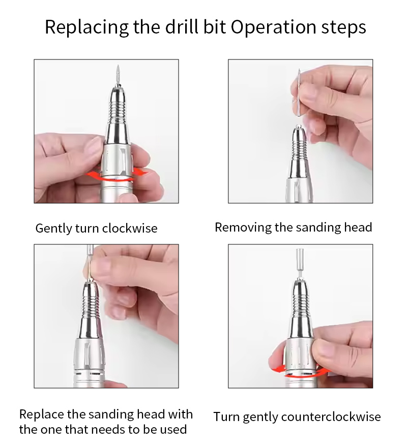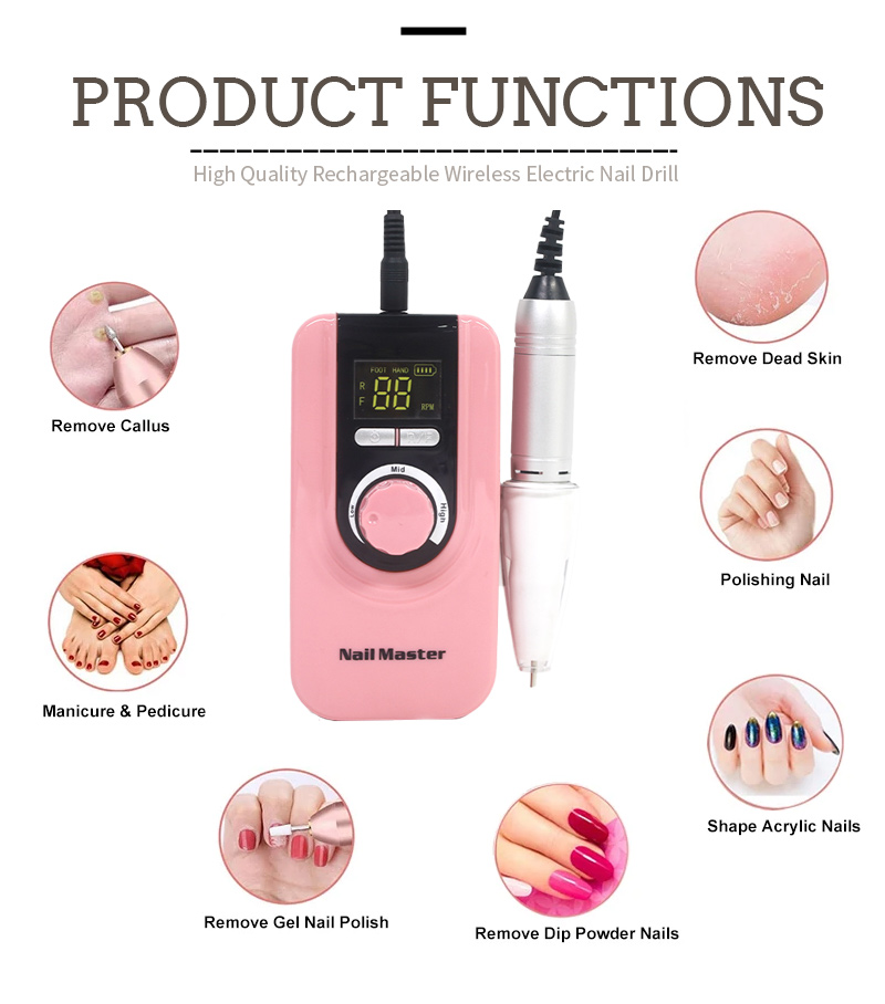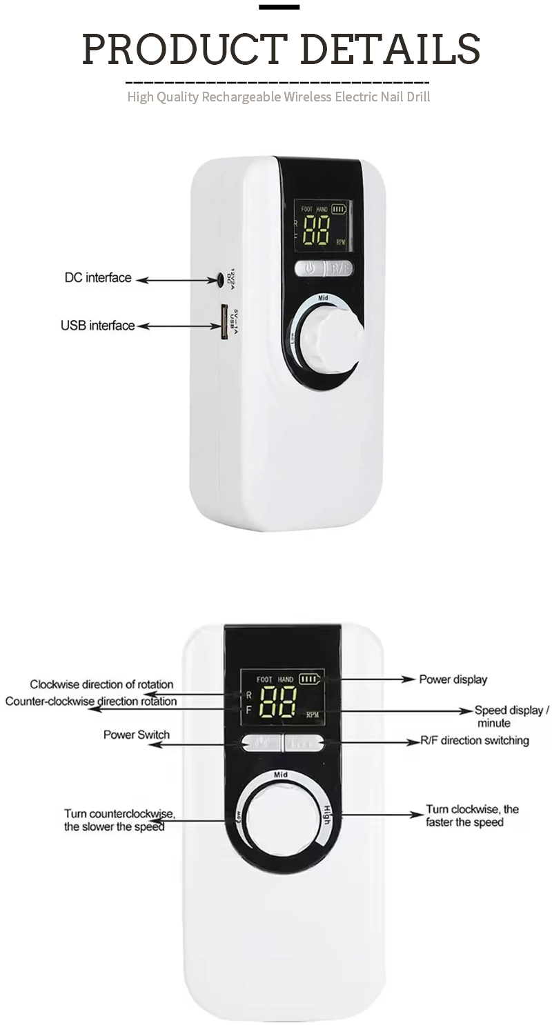 Prenosni komplet električnih svedrov za nohte z zmogljivim motorjem 65 W 35000 vrt./min Električni vrtalnik za nohte, ki ga ni enostavno poškodovati, 65 W, 35000 vrt./min