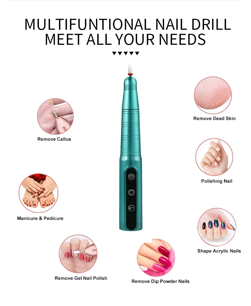 Prenosni komplet električnih svedrov za nohte z zmogljivim motorjem 65 W 35000 vrt./min