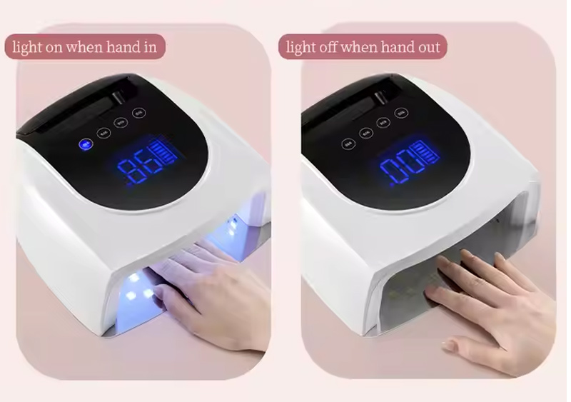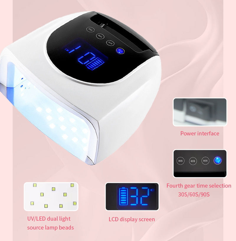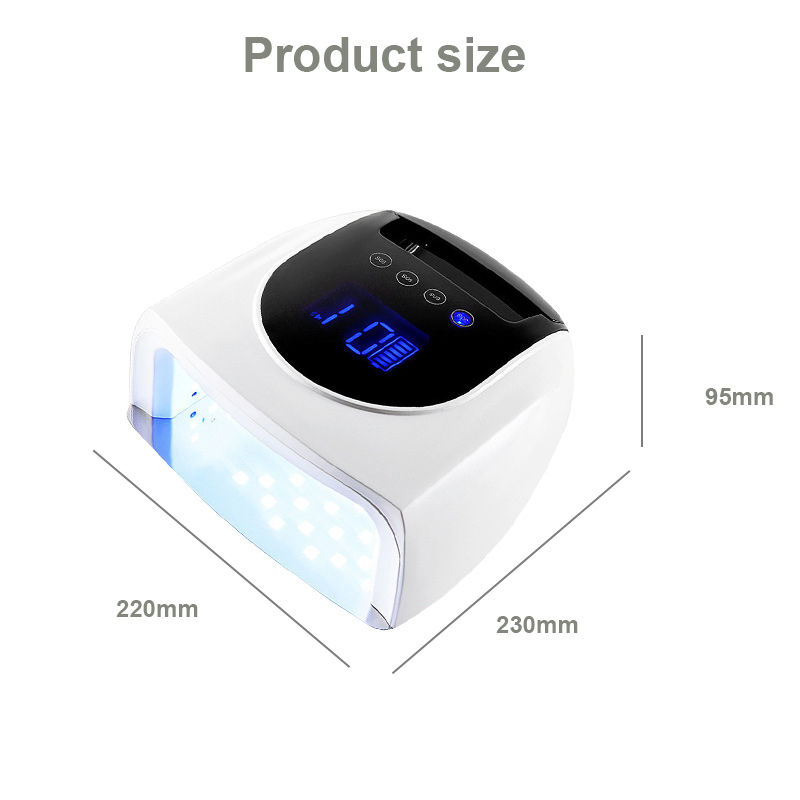 Izdelek zagotavlja enakomerno sušenje lepila brez krčenja. Njena dvojna vira svetlobe zagotavljata nežno ogrevanje, da preprečita razbarvanje rok in obremenitev oči, primerna za roke in noge, kar zagotavlja izjemno hitre rezultate sušenja.