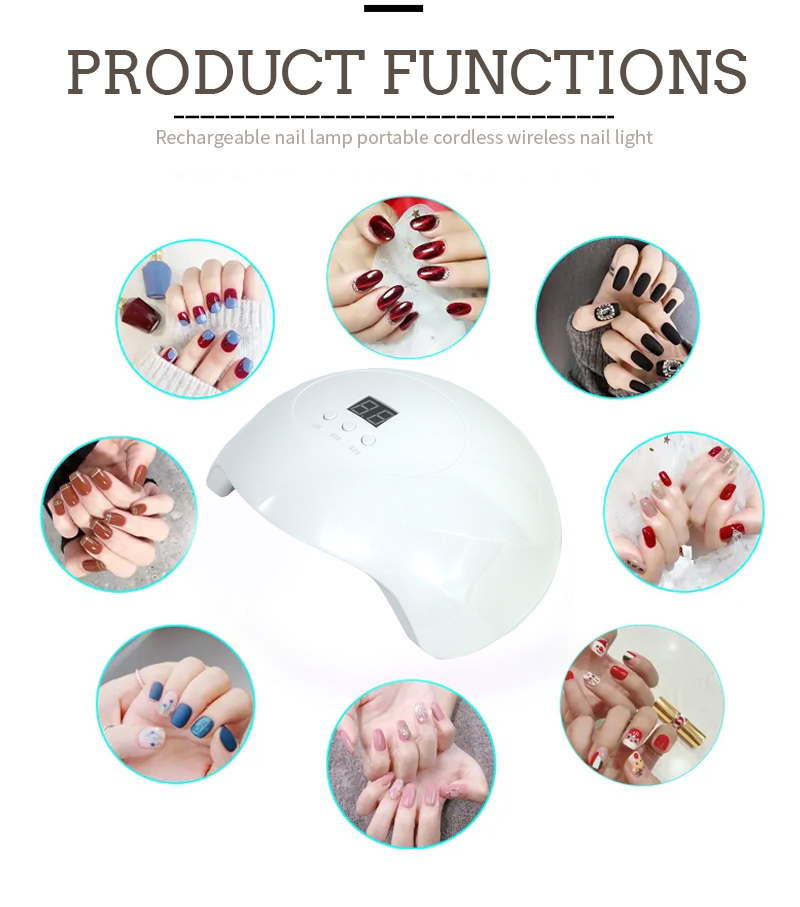 Izdelek zagotavlja celo sušenje lepila brez krčenja. Njeni viri z dvojno svetlobo zagotavljajo rahlo ogrevanje, da preprečijo razbarvanje rok in obremenitev oči, primerni tako za roke kot za noge, kar prinese izjemno hitro sušenje.