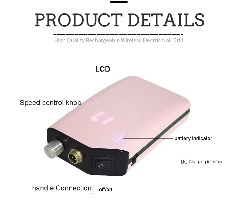 Prenosni komplet električnih svedrov za nohte z zmogljivim motorjem 65 W 35000 vrt./min