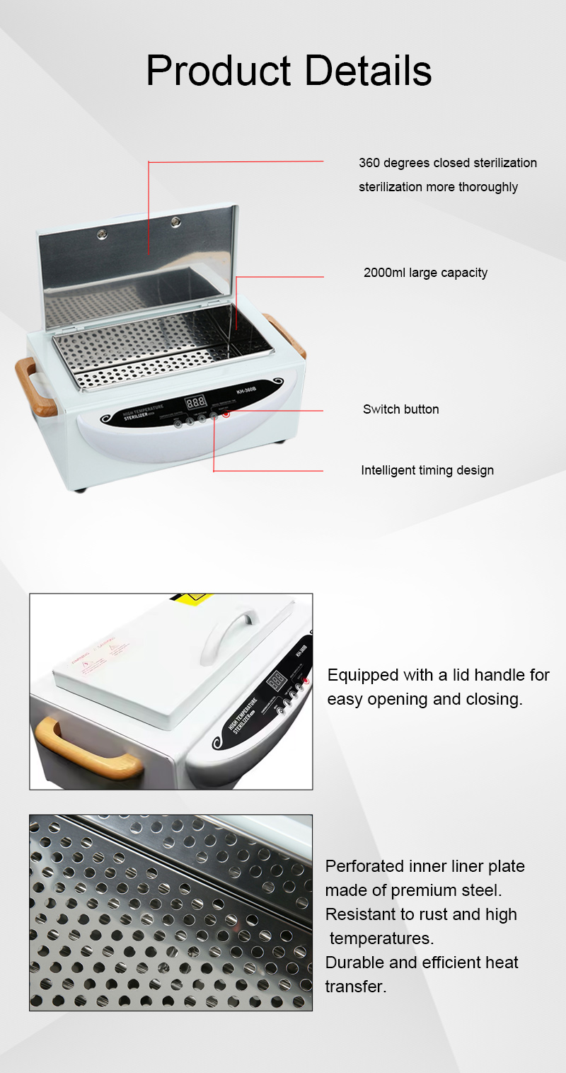 한국어Shenzhen Ruina Optoelectronics Co., Ltd., kot vodilni kitajski proizvajalec, dobavitelj in izvoznik visokotemperaturnih sterilizacijskih omaric, si dosledno prizadeva za popolnost kakovosti in si prisluži zaupanje številnih strank. Naši izdelki zagotavljajo vrhunski dizajn, vrhunske surovine, izjemno zmogljivost in visoko konkurenčne cene – točno to, kar išče vsak kupec. Seveda je prav tako nepogrešljiva celovita poprodajna storitev.