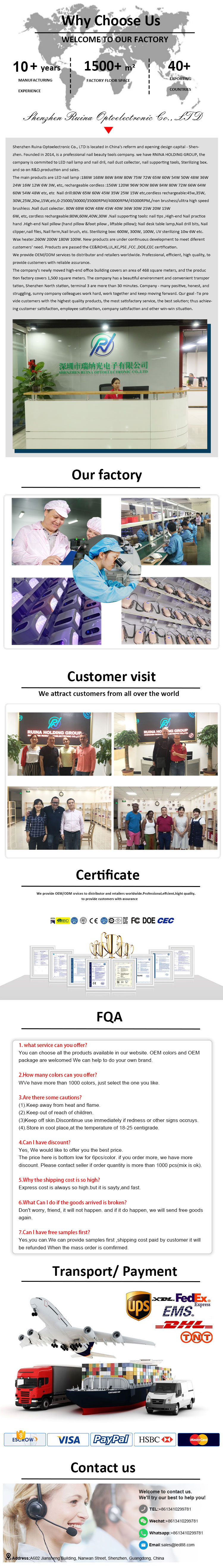 한국어Shenzhen Ruina Optoelectronic Co., Ltd. vodilni proizvajalec, dobavitelj in izvoznik nizkošumnih svedrov za nohte v obliki pisala na Kitajskem. Prizadevamo si za popolno kakovost izdelkov, tako da je naš tihi vrtalnik za nohte v obliki peresa zadovoljilo veliko strank. Ekstremen dizajn, kakovostne surovine, visoka zmogljivost in konkurenčna cena so tisto, kar si želi vsaka stranka, in to je tudi tisto, kar vam lahko ponudimo. Seveda je pomembna tudi naša popolna poprodajna storitev.