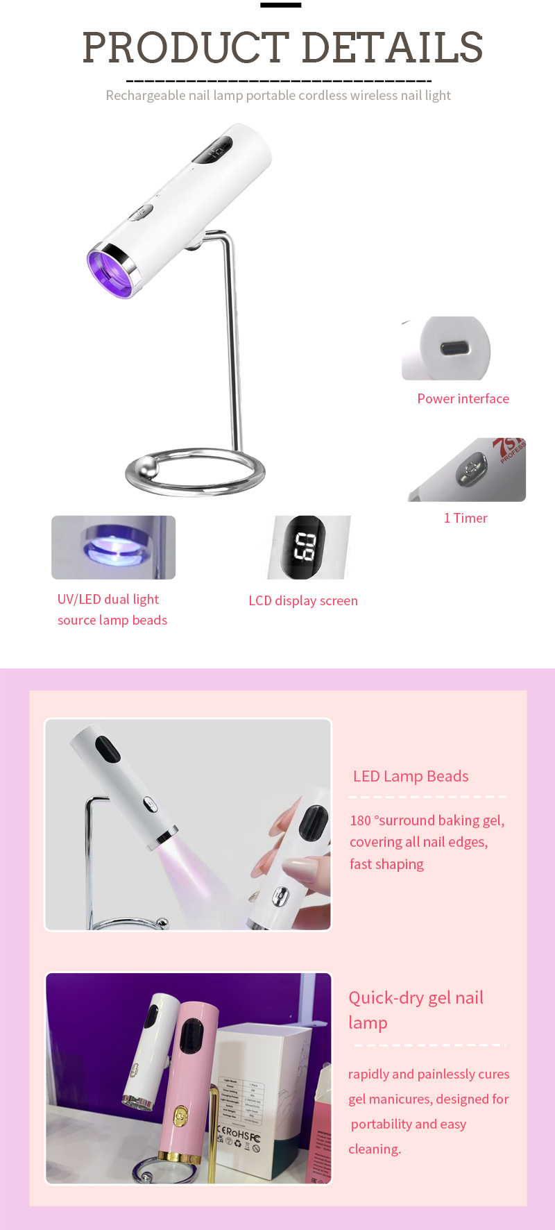 Izdelek zagotavlja celo sušenje lepila brez krčenja. Njeni viri z dvojno svetlobo zagotavljajo rahlo ogrevanje, da preprečijo razbarvanje rok in obremenitev oči, primerni tako za roke kot za noge, kar prinese izjemno hitro sušenje.
