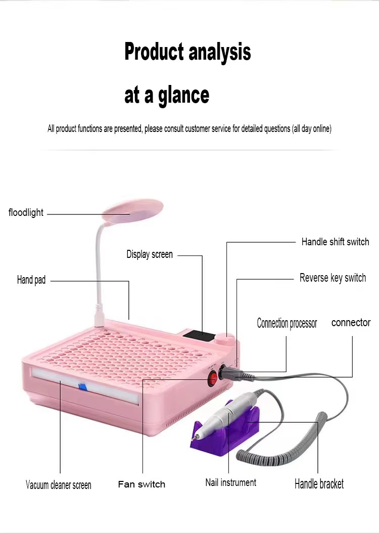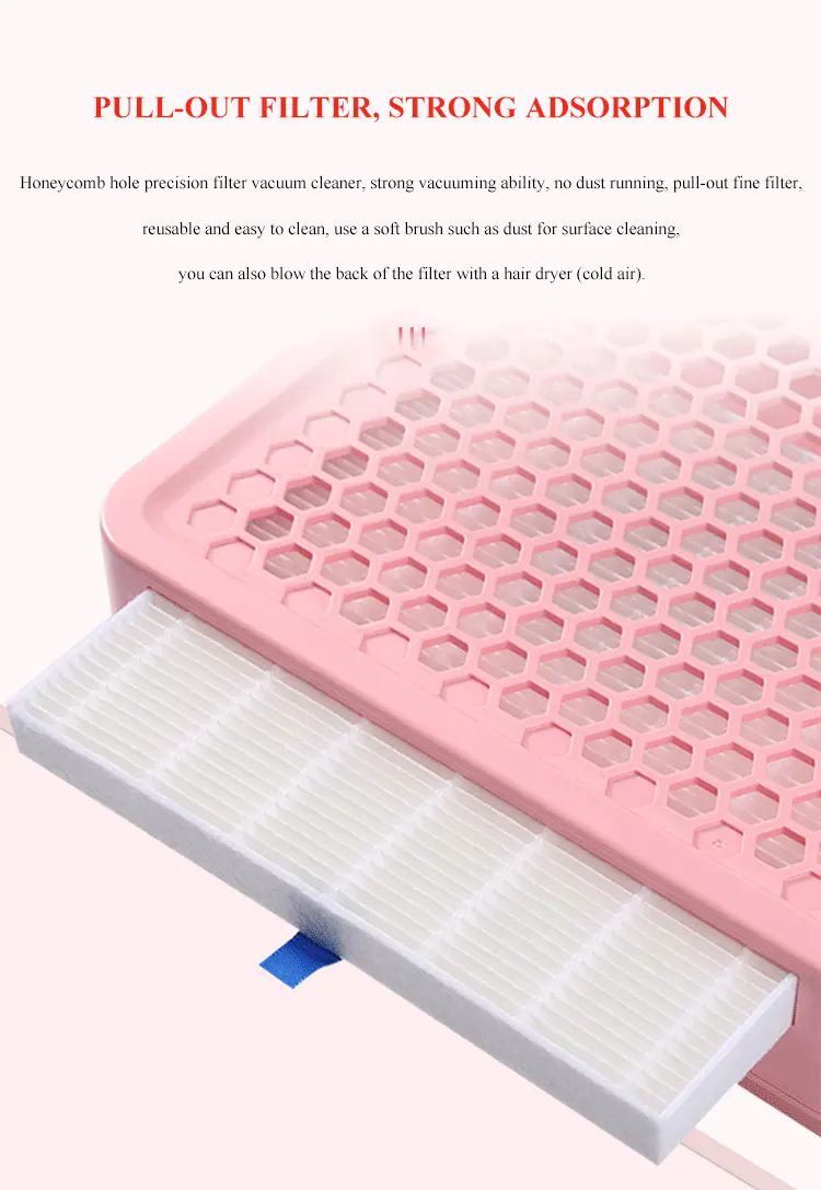 Izdelki Močna adsorpcija nohtnih naplavin ne pušča prahu, pult naj bo čist in urejen, hiter sesanje ne pušča moči prahu.