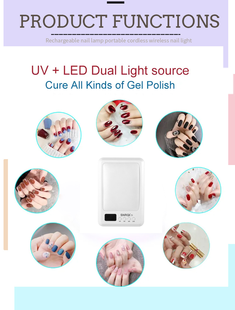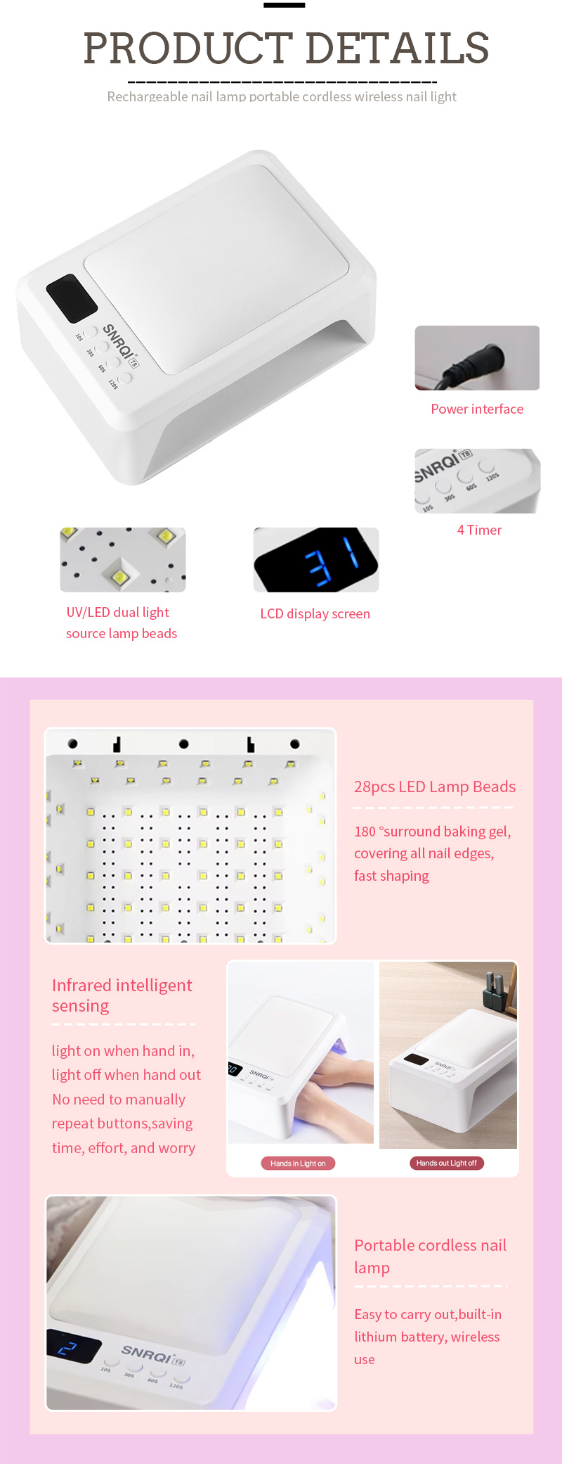 Ponovni lak za nohte za nohte Professional različica 128W videz izdelka ima zasnovo žleba, ročaj v žleb se lahko uporablja kot prenosni ročaj, zaradi česar je bolj priročen za nošenje in postavitev. Prav tako se izogne pomanjkljivosti ročaja, ki se zlahka zlomi in potegne ohlapno.