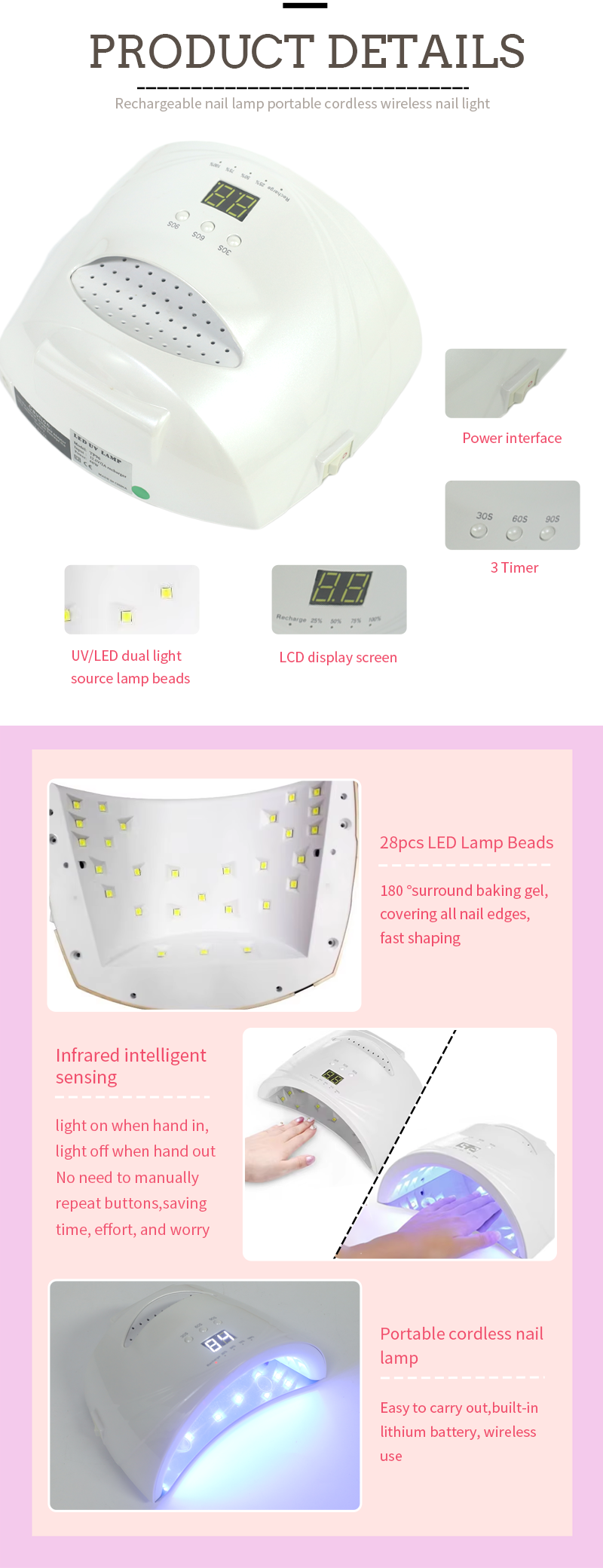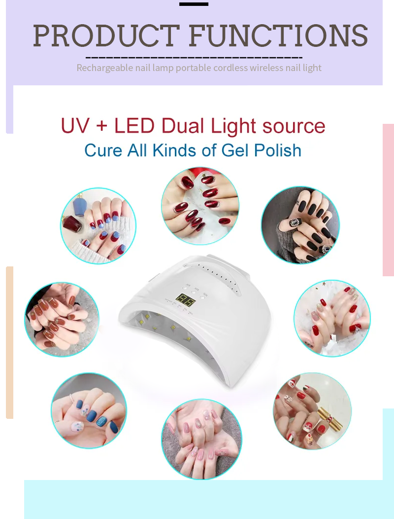 Izdelek zagotavlja celo sušenje lepila brez krčenja. Njeni viri z dvojno svetlobo zagotavljajo rahlo ogrevanje, da preprečijo razbarvanje rok in obremenitev oči, primerni tako za roke kot za noge, kar prinese izjemno hitro sušenje.