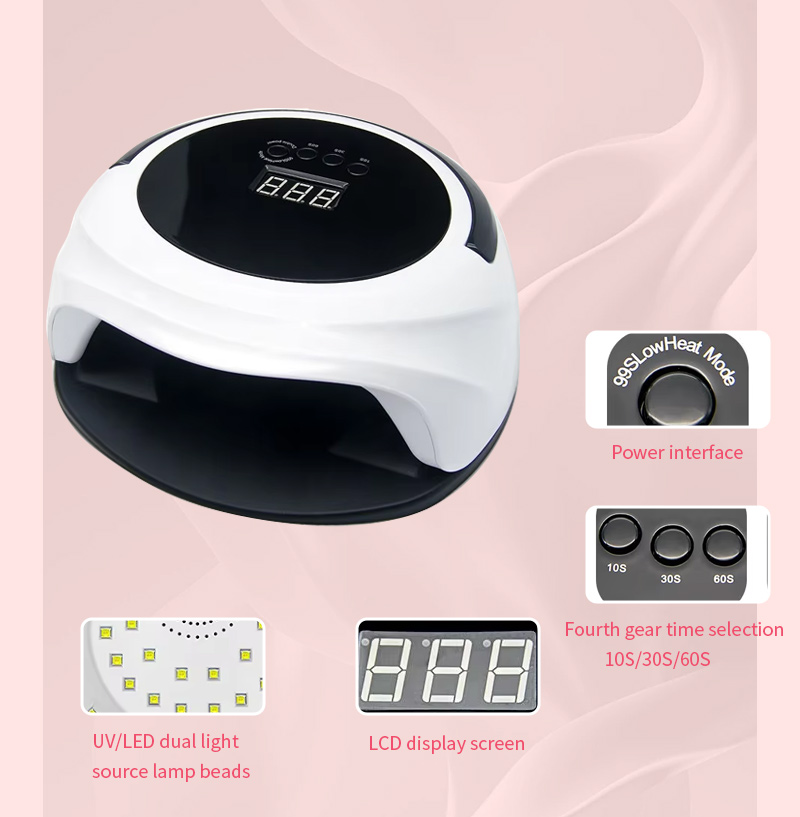 Lučka za sušenje nohtov s funkcijo samodejnega senzorja zagotavlja enakomerno sušenje lepila brez krčenja. Njena dvojna vira svetlobe zagotavljata nežno ogrevanje, da preprečita razbarvanje rok in obremenitev oči, primerna za roke in noge, kar zagotavlja izjemno hitre rezultate sušenja.