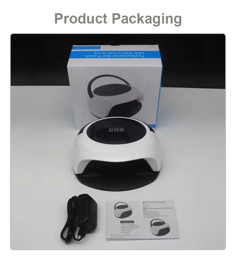 Lučka za sušenje nohtov s funkcijo samodejnega senzorja ima tehnologijo infrardečega pametnega zaznavanja, ki samodejno zasveti, ko se roke približajo, in ugasne, ko se roke odmaknejo – s čimer odpravite težave zaradi ponavljajočega se pritiskanja gumbov in prihranite čas in trud. Visoko zmogljivo lepilo za peko ne zahteva dolgotrajnega čakanja, prihrani čas in trud.