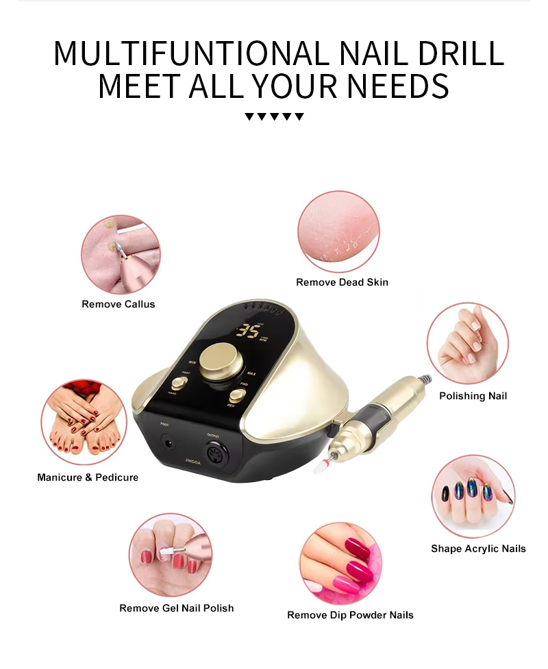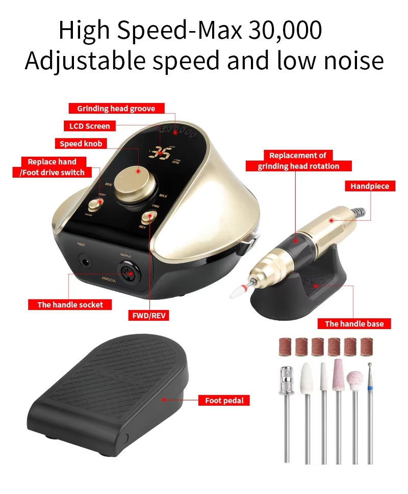 Električni vrtalnik za nohte, ki ga ni enostavno poškodovati, 65 W, 35000 vrt./min