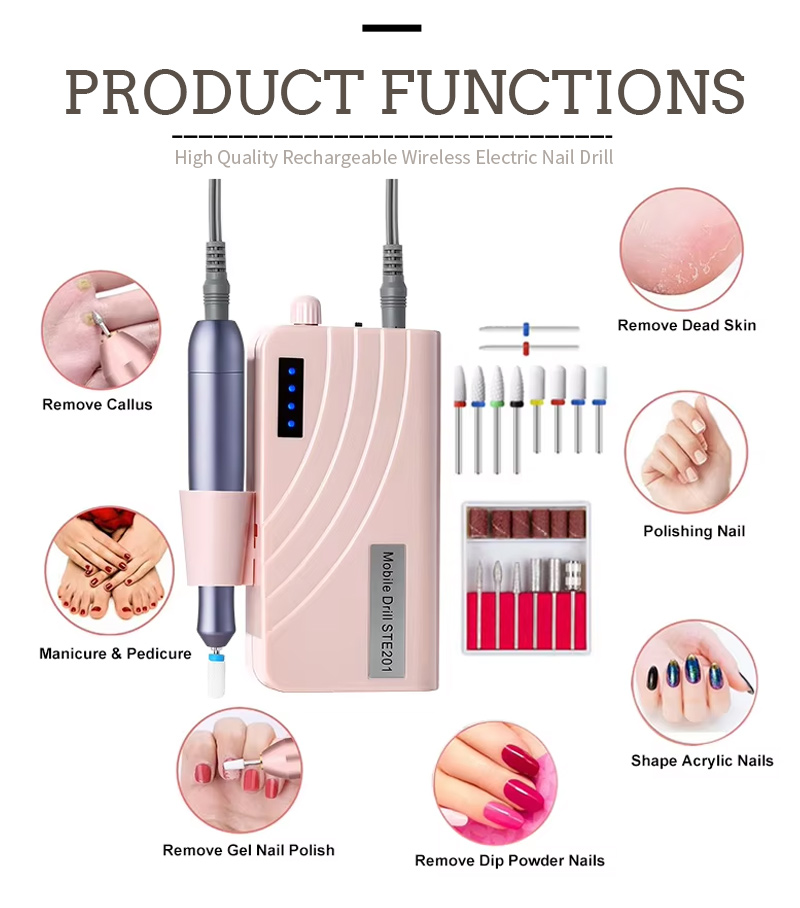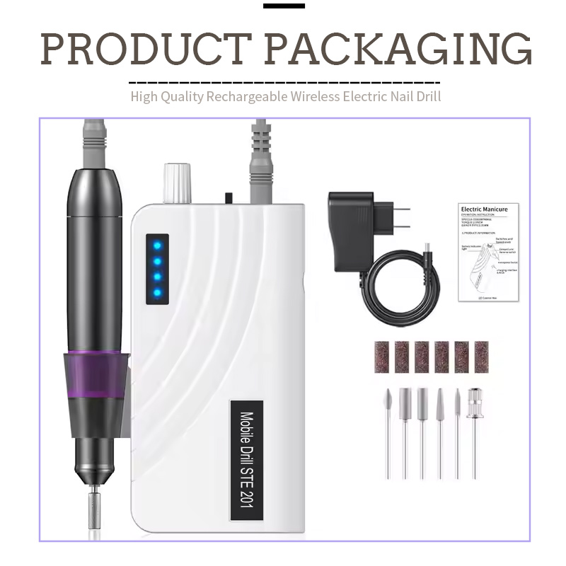 Komplet polnilnih svedrov za nohte z zmogljivim ročnikom 45 W 35000 vrt./min