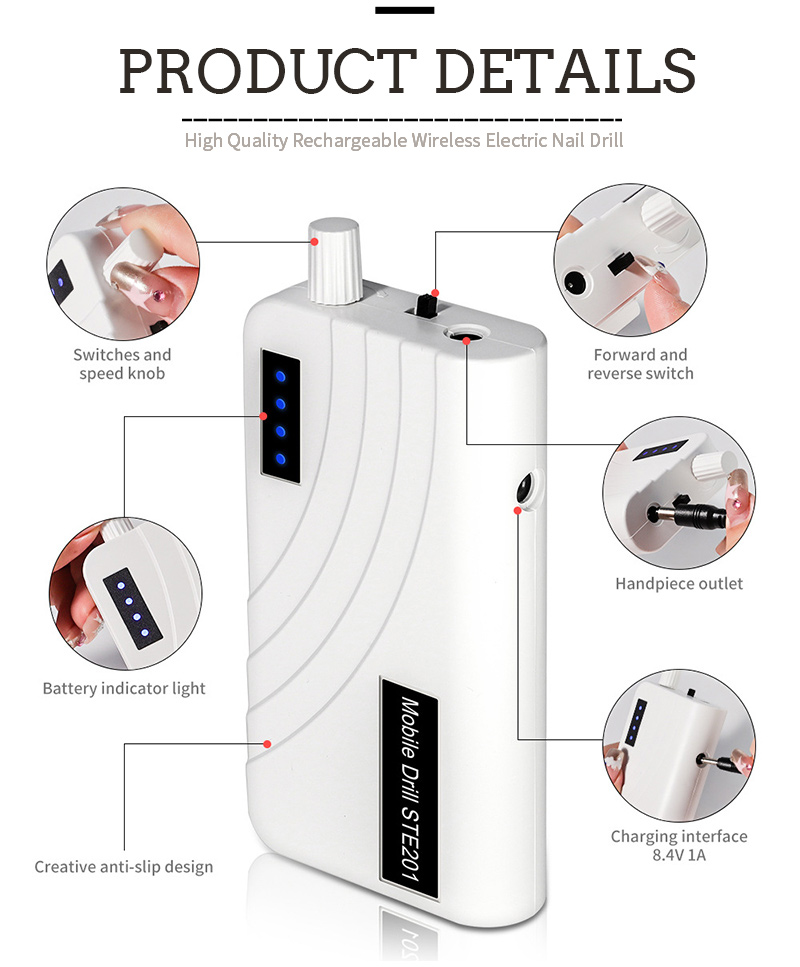 Akumulatorski akumulatorski vrtalni stroj za nohte, močan 45 W, 40000 vrt./min