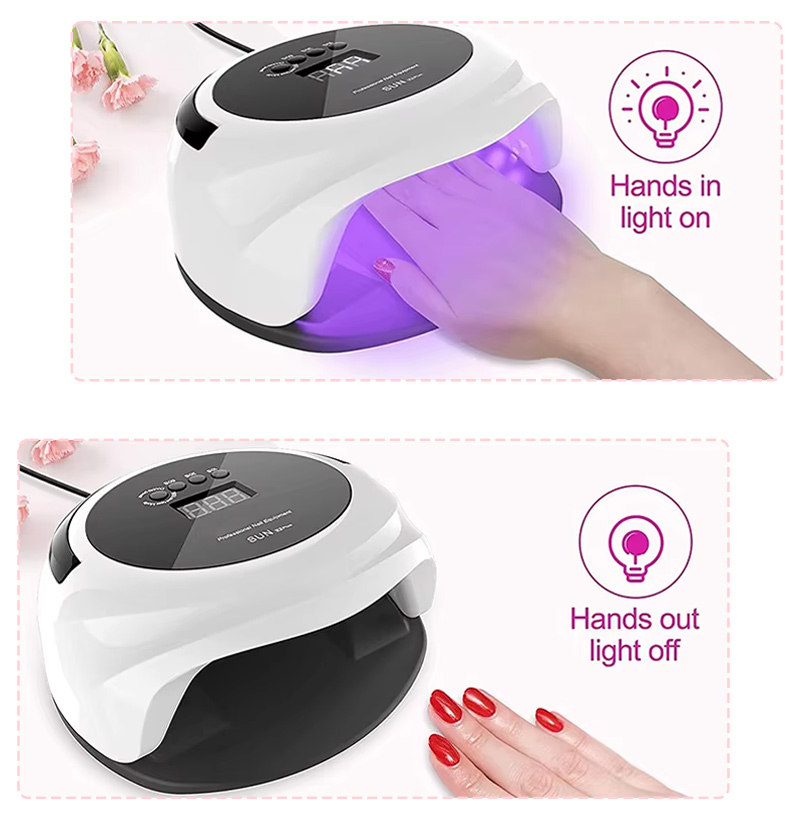 Izdelek zagotavlja enakomerno sušenje lepila brez krčenja. Njena dvojna vira svetlobe zagotavljata nežno ogrevanje, da preprečita razbarvanje rok in obremenitev oči, primerna za roke in noge, kar zagotavlja izjemno hitre rezultate sušenja.