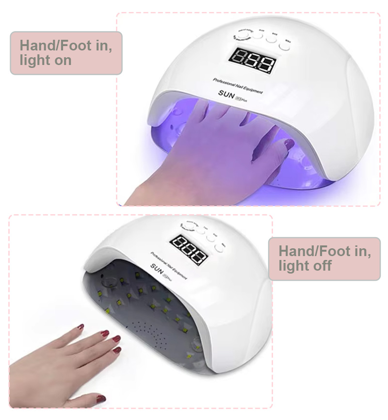 Izdelek zagotavlja enakomerno sušenje lepila brez krčenja. Njena dvojna vira svetlobe zagotavljata nežno ogrevanje, da preprečita razbarvanje rok in obremenitev oči, primerna za roke in noge, kar zagotavlja izjemno hitre rezultate sušenja.