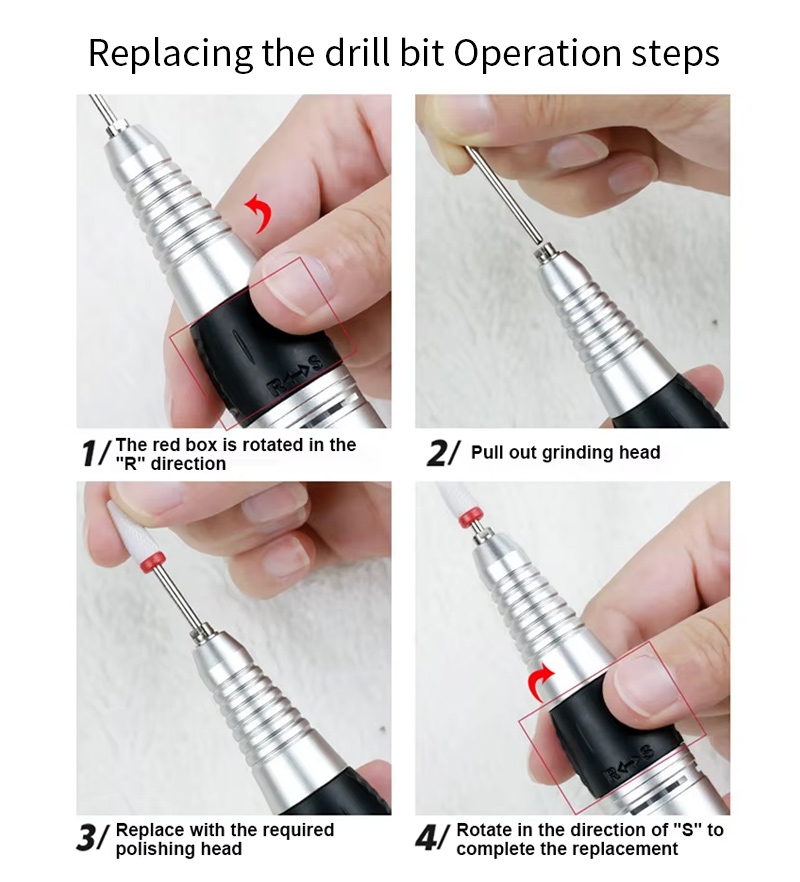 Ta profesionalni brezžični električni nadomestni sveder za nohte način delovanja, to je, priključite in izvlecite, enostavno in priročno, zamenjavo lahko uporabite po zaključku.