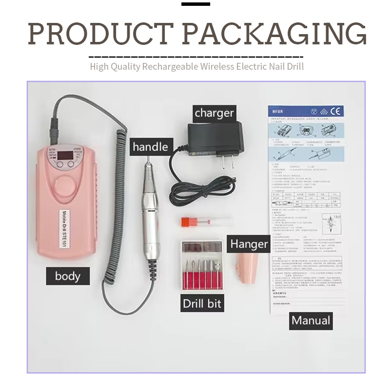 Vsebina tega profesionalnega paketa brezžičnega električnega vrtalnika za nohte vključuje izdelek za brušenje, polnilni kabel USB, priročnik z navodili za uporabo izdelka ter lahko in prenosljivo škatlo.