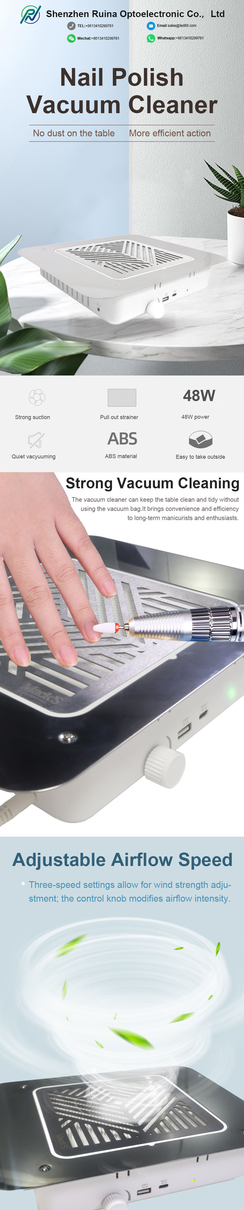 한국어Shenzhen Ruina Optoelectronic Co., Ltd. vodilni kitajski proizvajalec, dobavitelj in izvoznik tihega zbiralnika prahu za nohte. Prizadevamo si za popolno kakovost izdelkov, tako da je naš tihi zbiralnik prahu za nohte zadovoljilo veliko strank. Ekstremen dizajn, kakovostne surovine, visoka zmogljivost in konkurenčna cena so tisto, kar si želi vsaka stranka, in to je tudi tisto, kar vam lahko ponudimo. Seveda je pomembna tudi naša popolna poprodajna storitev.