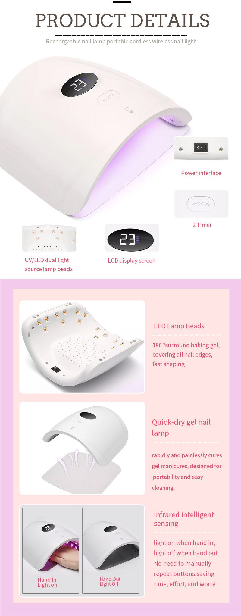 Polnilna LED svetilka za sušenje nohtov 86 W, prenosna