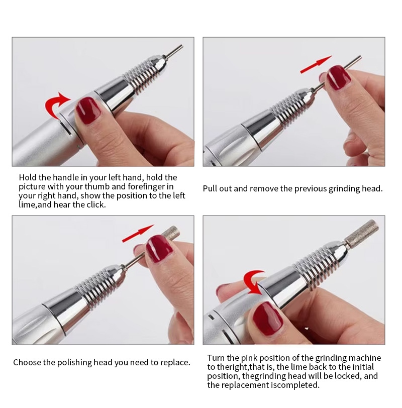 Ta brezžični električni vrtalnik za nohte s 35.000 vrtljaji na minuto nadomestni način delovanja svedra, to je, priključite in izvlecite, enostavno in priročno, zamenjavo lahko uporabite po zaključku.